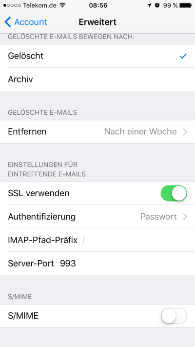 Einstellungen für IMAP findest Du unter Erweitert in Deinem E-Mail Account: